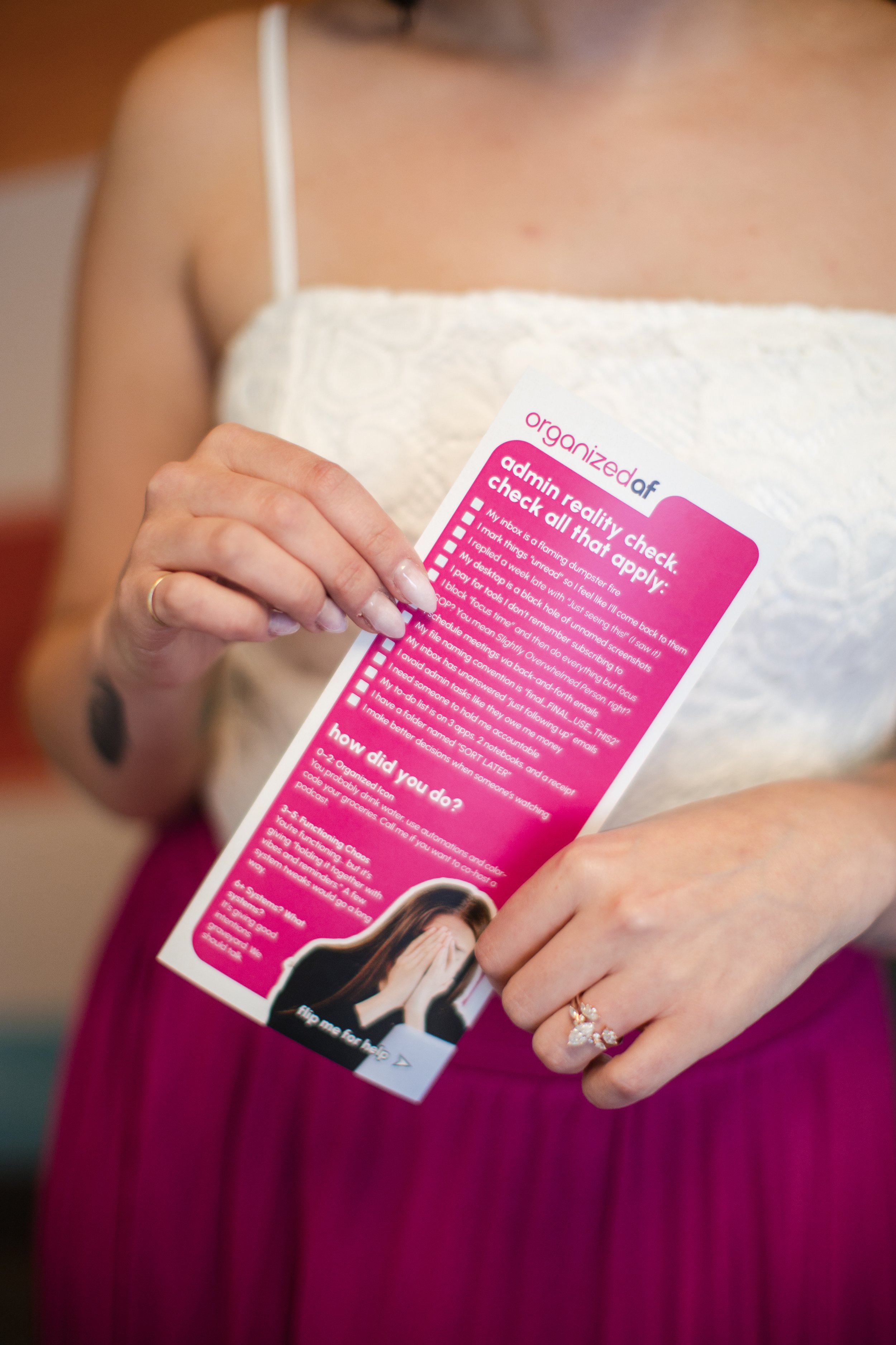Let’s skip the BS and get to the good stuff. Let’s build a business that feels good and works. If you’re looking for someone who’s OrganizedAF and knows how to get things done—without making it weird—you’ve found your person.